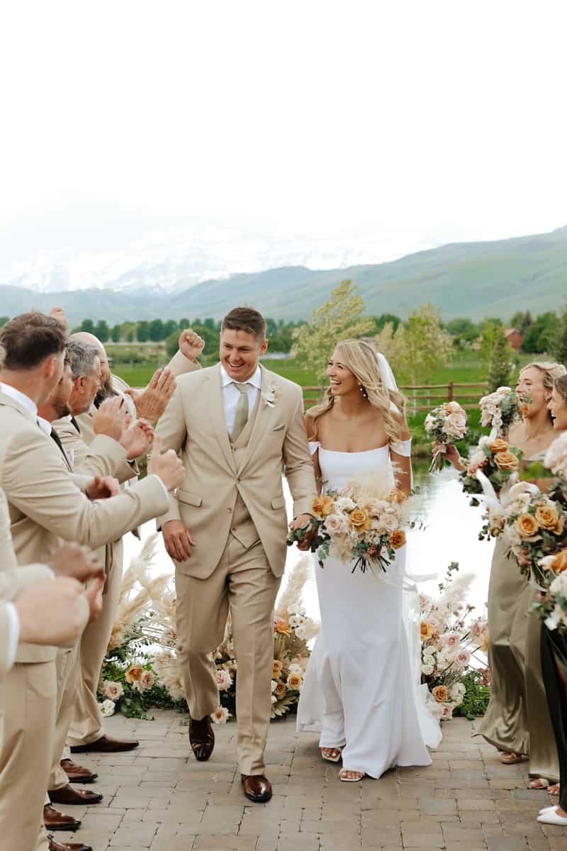 River Bottom Ranch, just outside of Park City, Utah, gave us exactly the kind of backdrop that lets the landscape do the heavy lifting. Towering peaks, open sky, wide open space — the setting was stunning, and we built everything else around it. Soft peaches, crisp whites, and sage greens wove warmth into the natural surroundings without competing with them. The result felt effortless — because the best design always does.